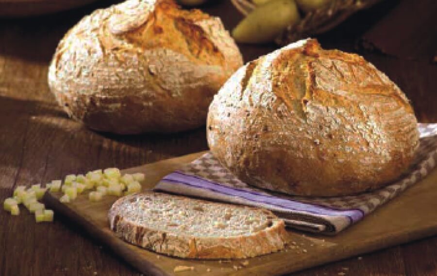 dozowanie 25 %Stabilny kwas ziemniaczany. W gotowym wypieku kawałki ziemniaków są dobrze widoczne, przyjemne do gryzienia i nadają mu rustykalnego, wiejskiego charakteru.
